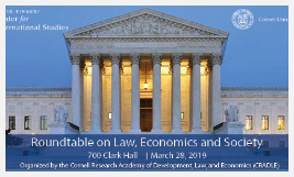 This all-day seminar, open to the Cornell community, will feature lectures by Erica Bosio and Valentina Saltane of the World Bank's Doing Business team, a book talk by Patrick Kabanda, author of The Creative Wealth of Nations (Cambridge University Press, 2018), and presentations by Professor Kaushik Basu (economics) and seven graduate students in economics and law.